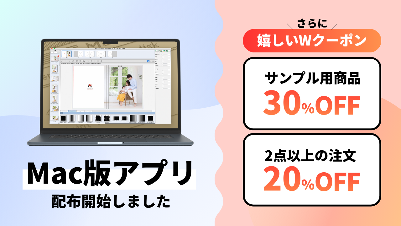 - Mac版デスクトップアプリをリリース! デザインの自由度が大幅に向上。さらに、データはローカルに保存されるため期限なしで再注文が可能に!数年後のお客様からの「増刷してほしい」というご要望にも、いつでも即座にお応えいただけます。